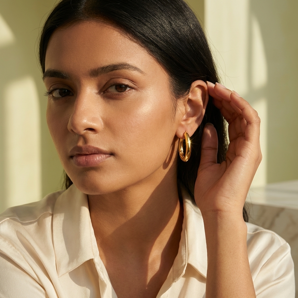 Lightweight anti-tarnish 316L Stainless steel chunky hoops for daily wear.