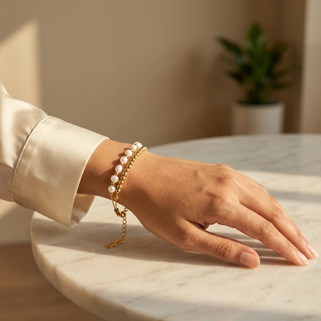 - Polished finish with delicate pearls, sweat-safe and comfortable for long hours.
