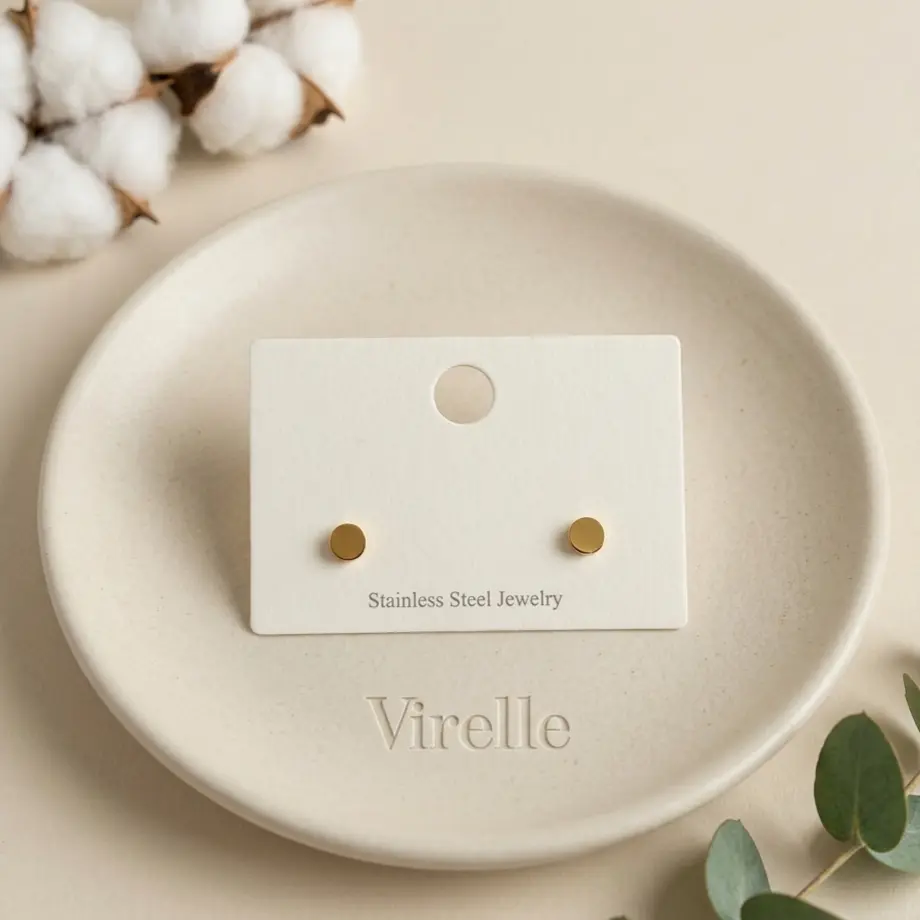 - Lightweight gold-tone Stainless Steel stud earrings for daily wear.
