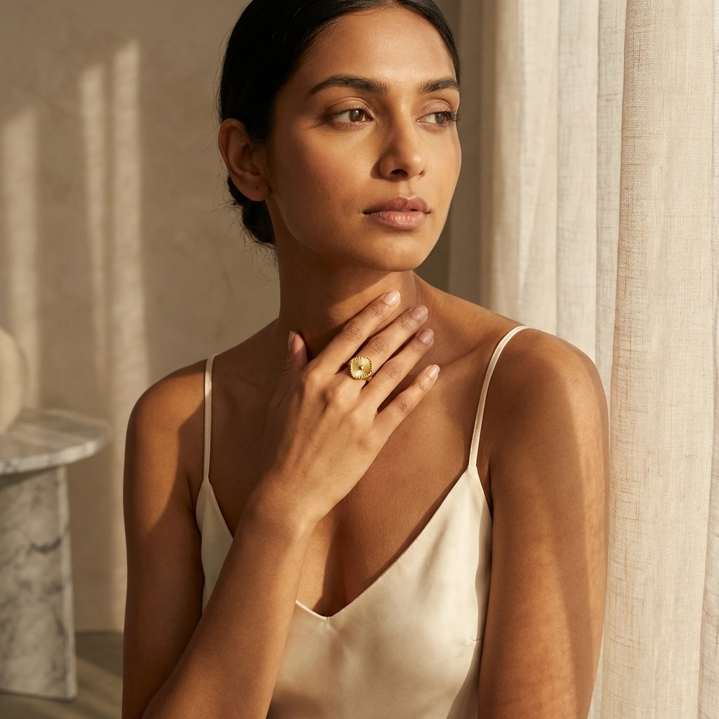 - Complete with a fully adjustable band, this ring is the perfect everyday staple to style with your kurtas or office wear.