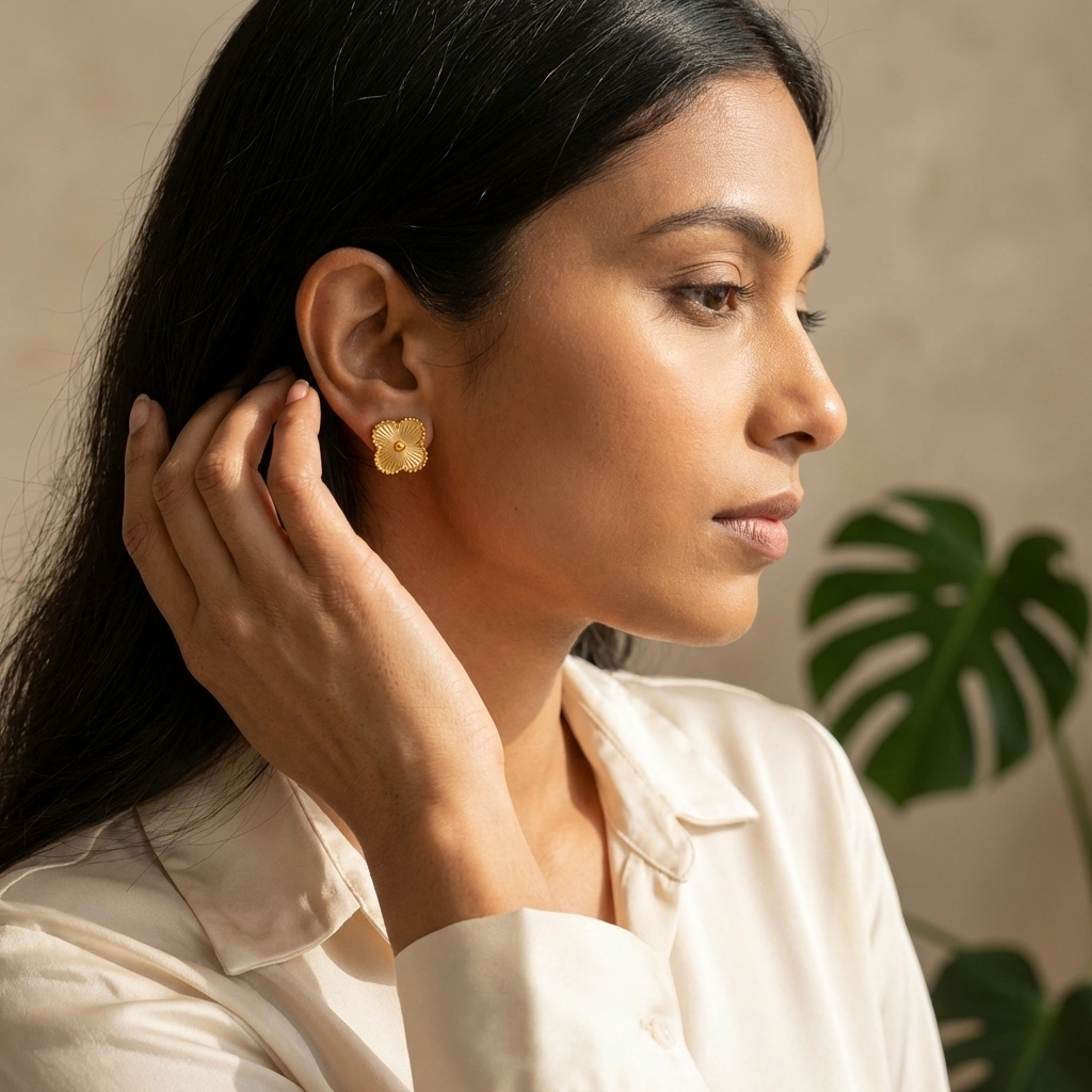 - Lightweight anti-tarnish Stainless steel stud earrings crafted for everyday fashion.